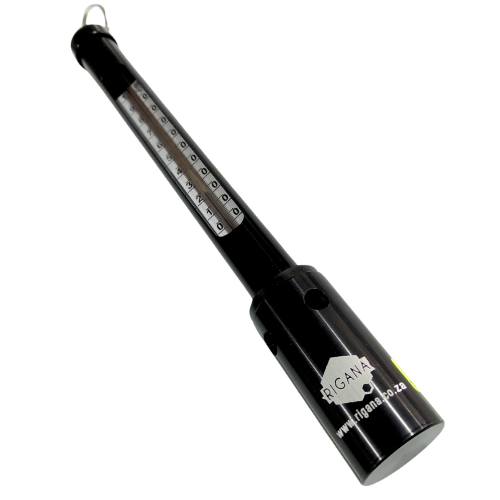 - The Wellscoop Thermometer is supplied in a black anodized aluminum housing with an integrated key ring at the top of the unit.